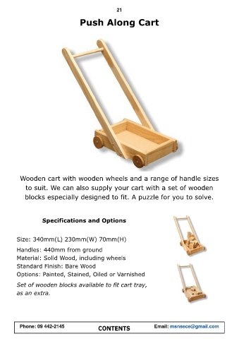 Wooden cart with wooden wheels and a range of handle sizes