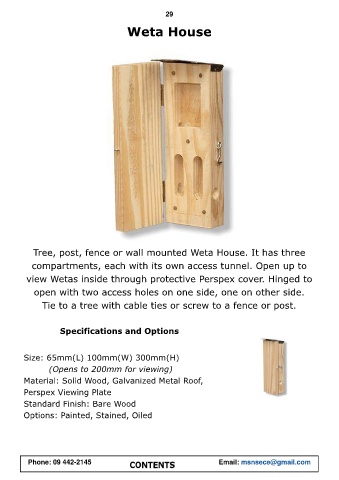 view Wetas inside through protective Perspex cover. Hinged to